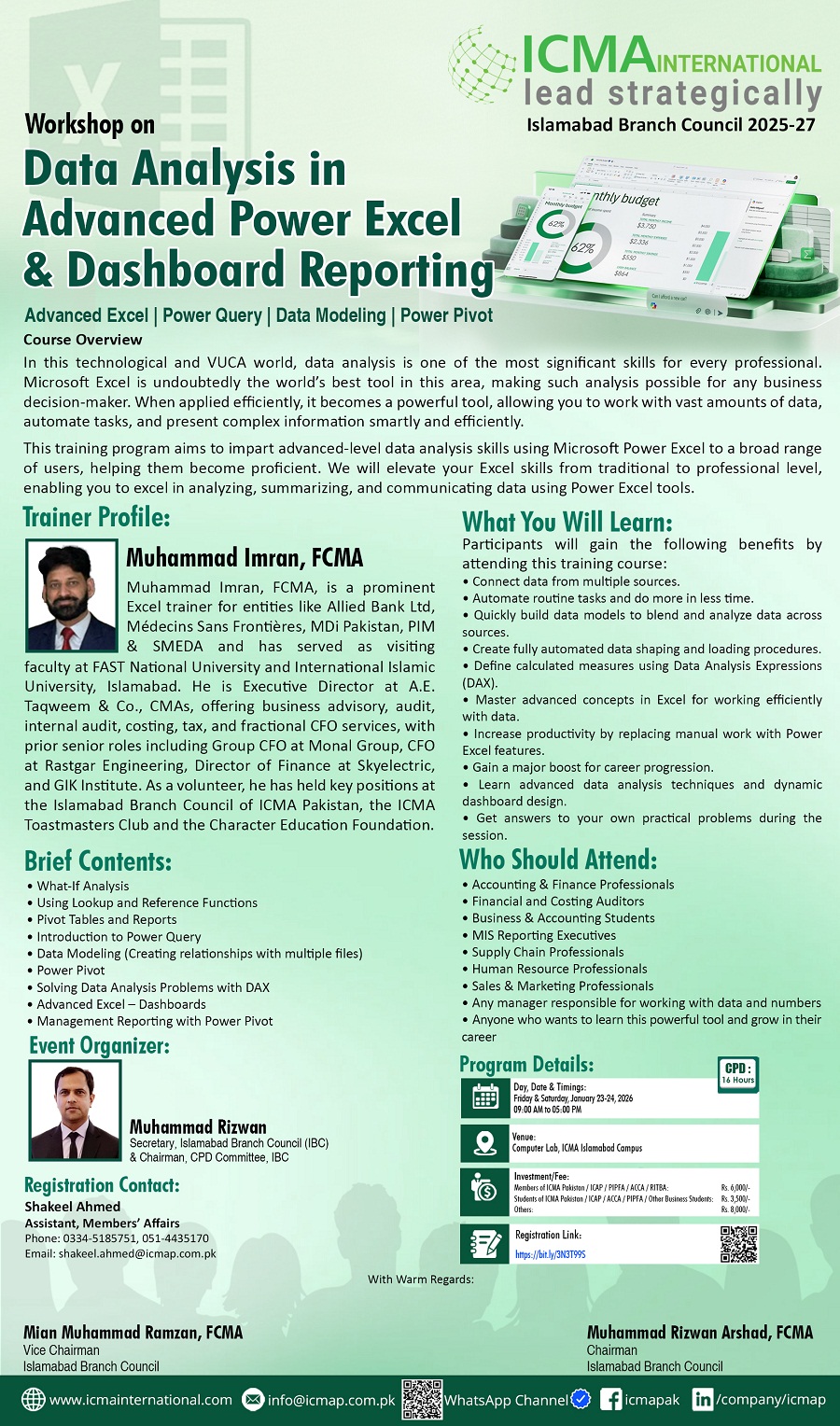 Established in 1951, the Institute of Cost and Management Accountants of Pakistan is the driving force