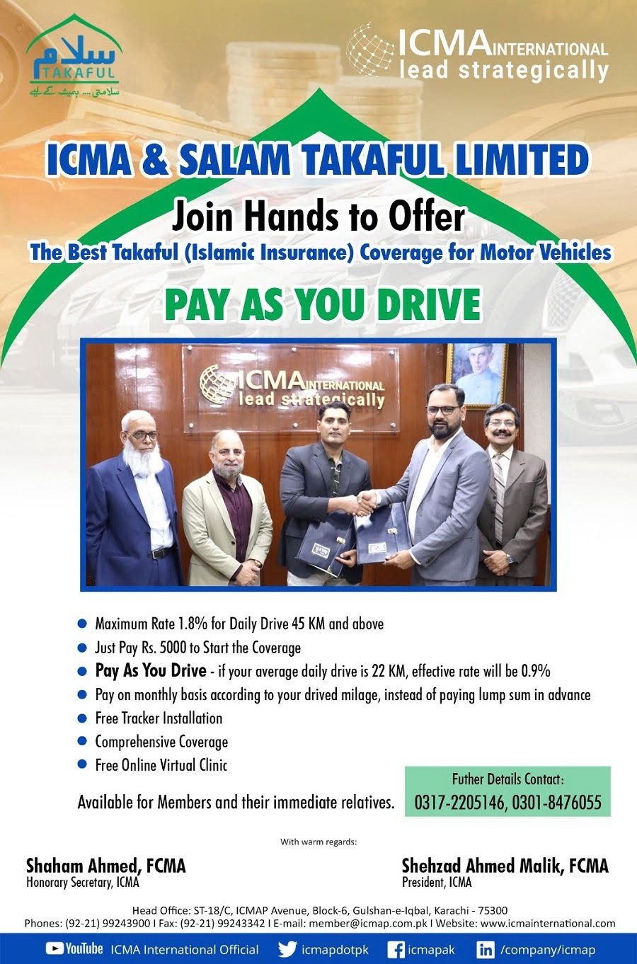 - Special Rates for Members of ICMA on Takaful Coverage for Motor Vehicles with Salaam Takaful