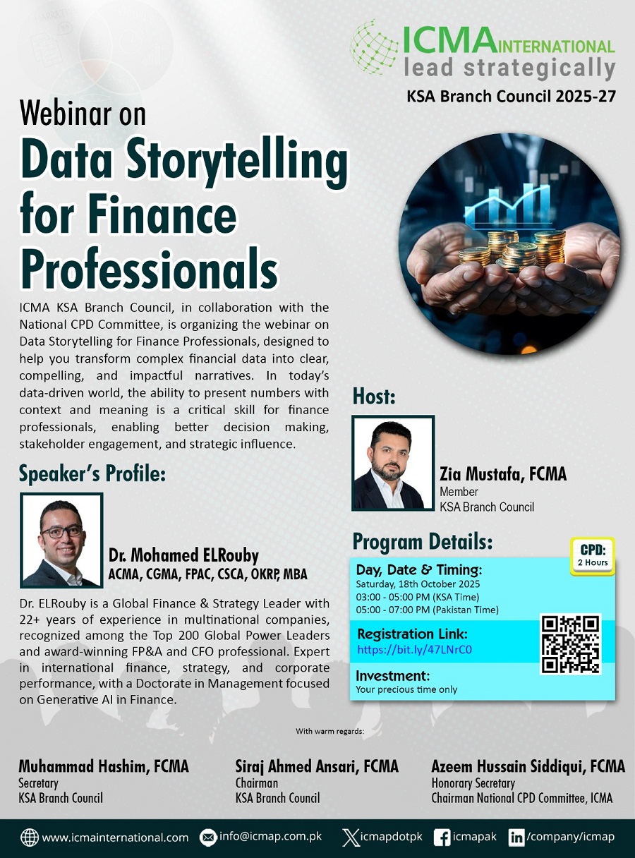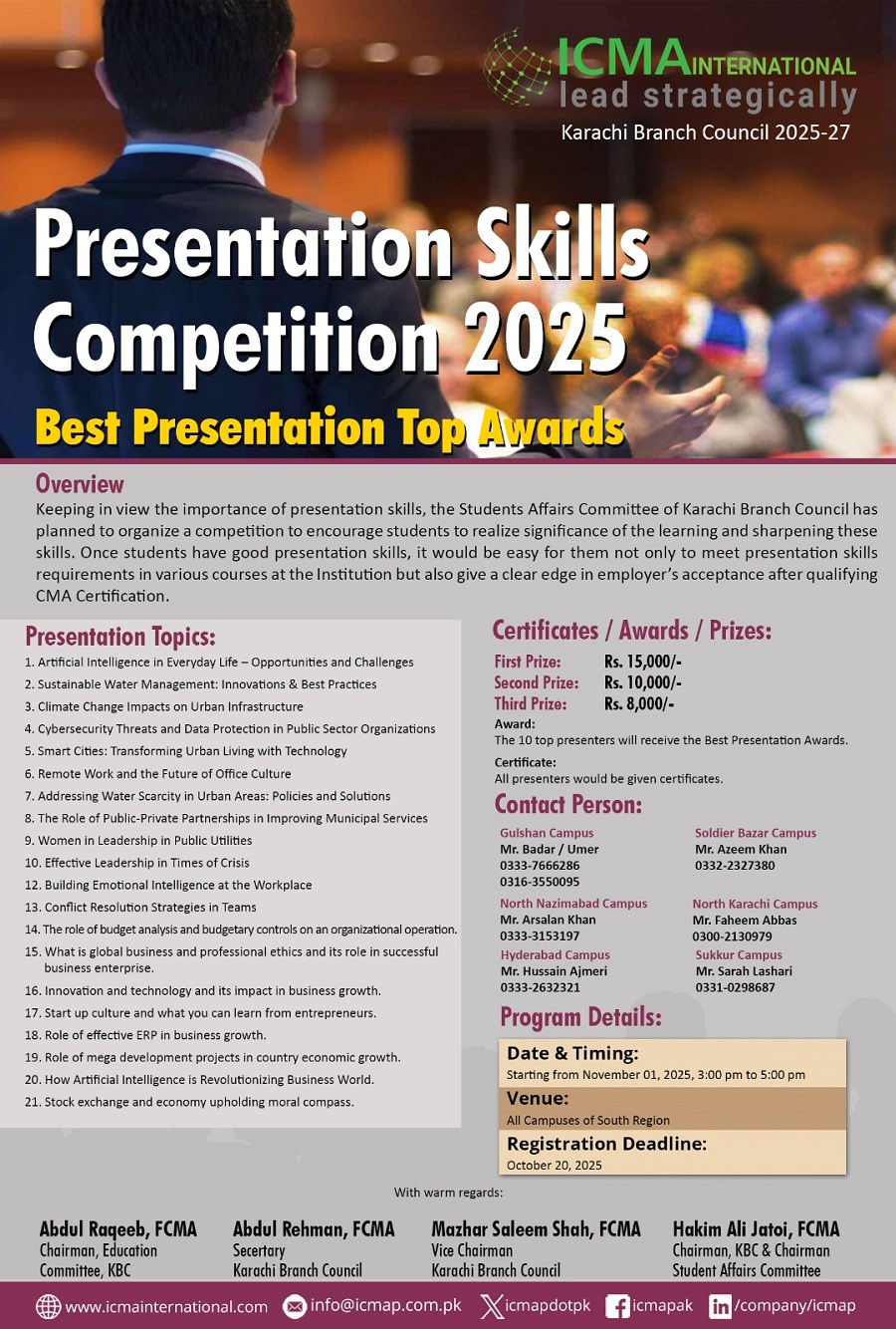 Established in 1951, the Institute of Cost and Management Accountants of Pakistan is the driving force behind the profession of Management Accounting in Pakistan. Our mission is to regulate and promote this dynamic field, empowering professionals to reach new heights of success.
