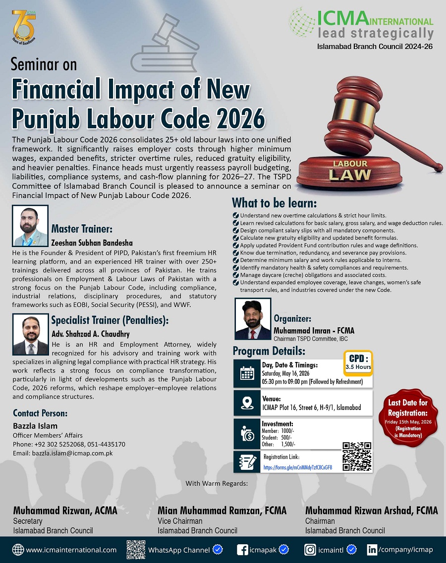 Established in 1951, the Institute of Cost and Management Accountants of Pakistan is the driving force