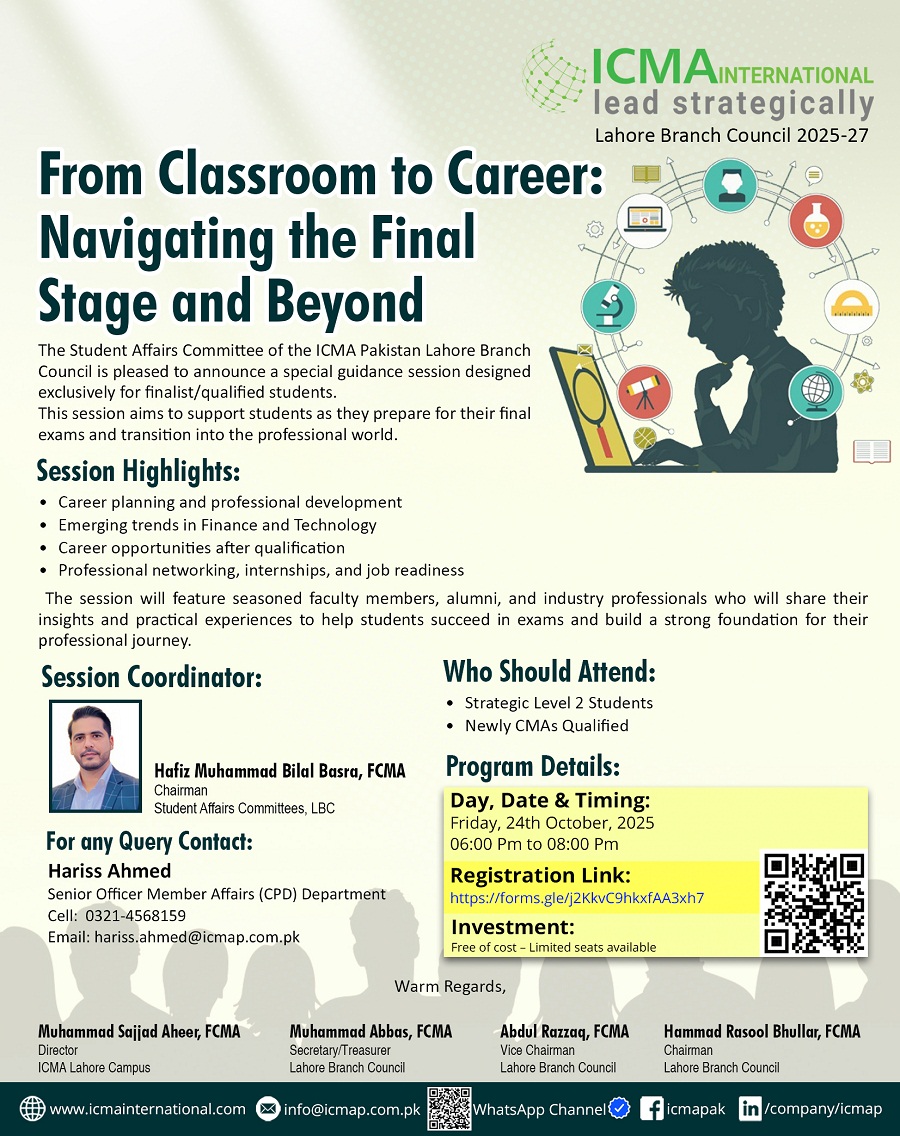 Established in 1951, the Institute of Cost and Management Accountants of Pakistan is the driving force