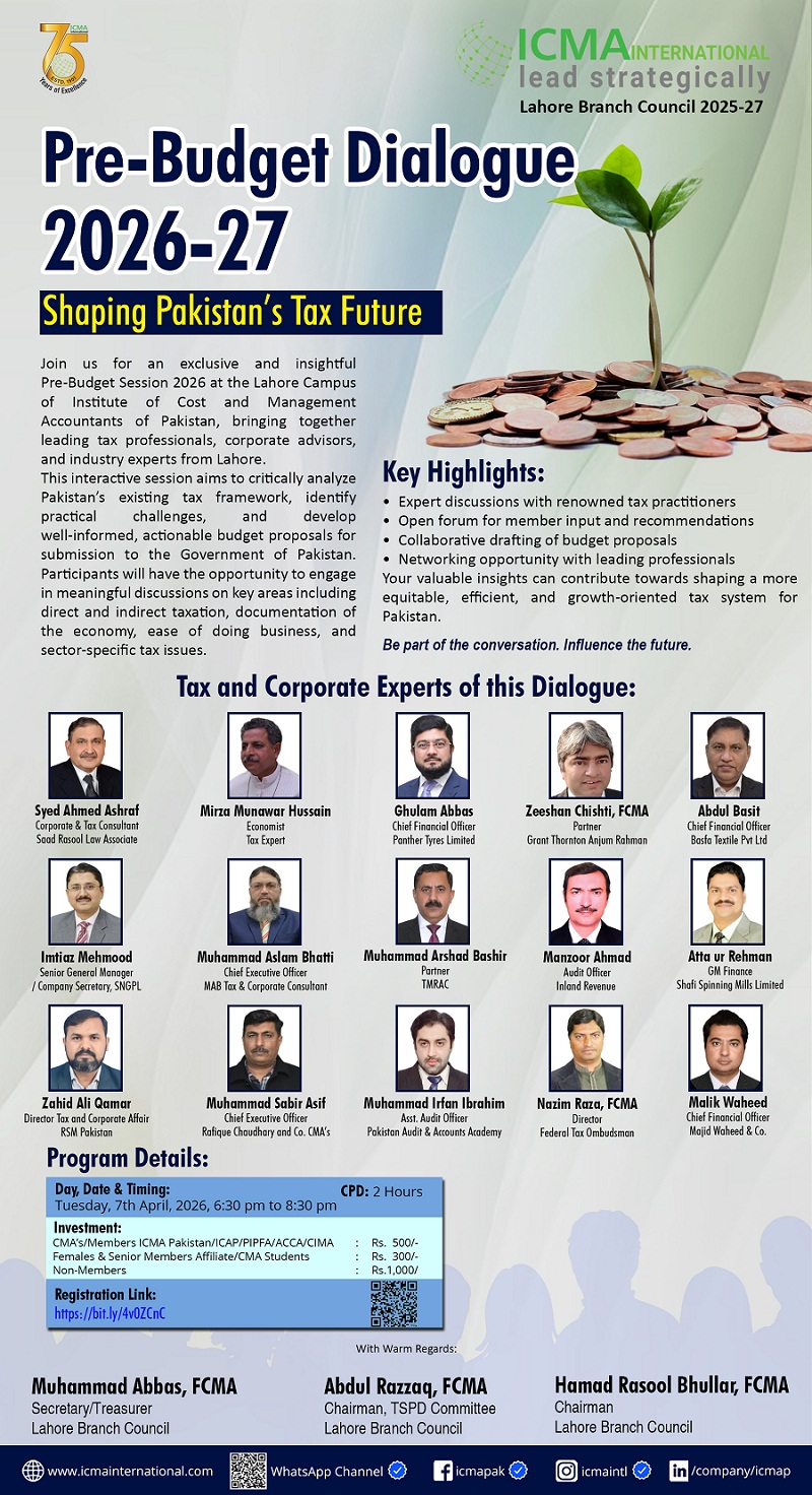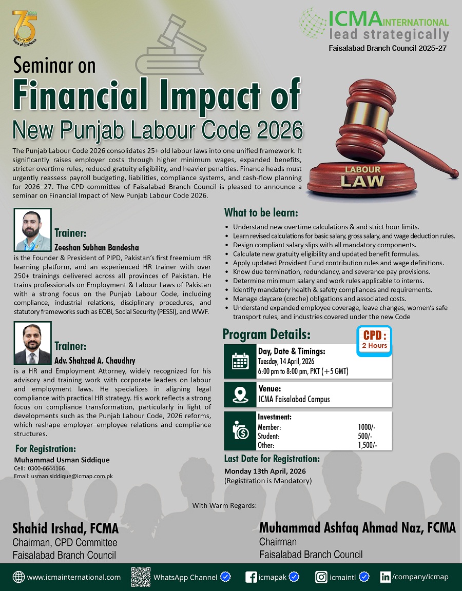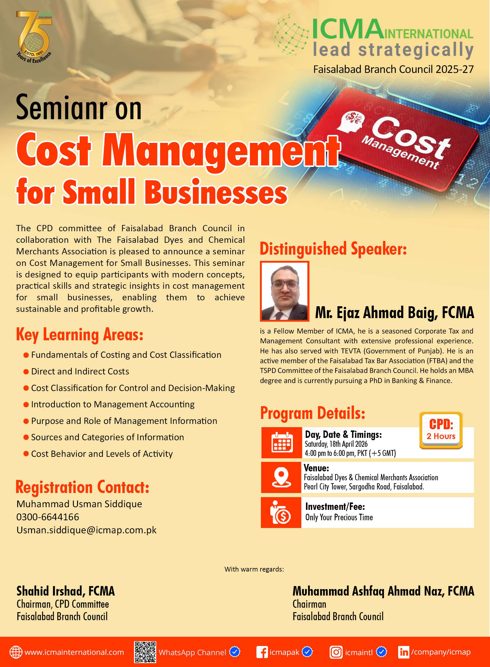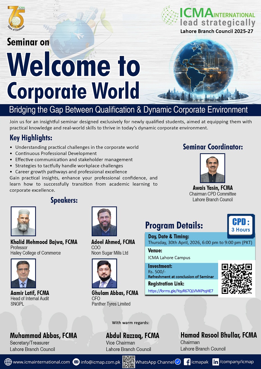 Established in 1951, the Institute of Cost and Management Accountants of Pakistan is the driving force