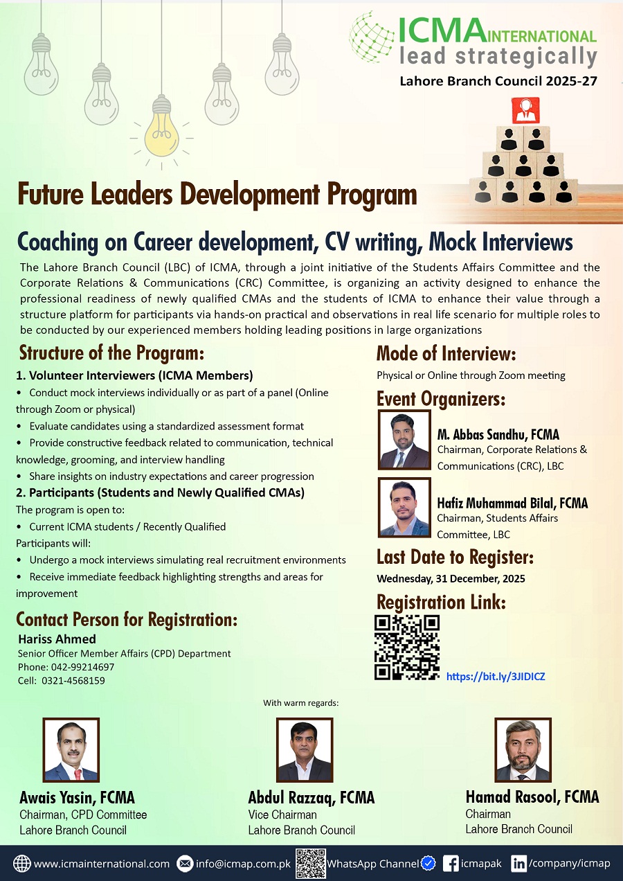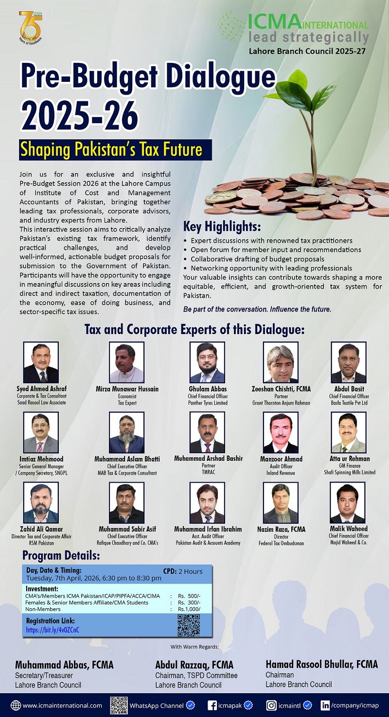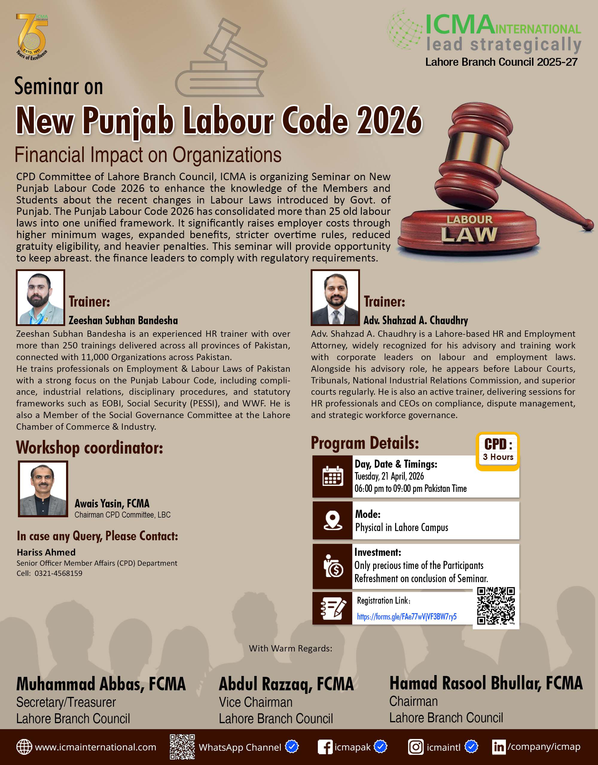 Established in 1951, the Institute of Cost and Management Accountants of Pakistan is the driving force