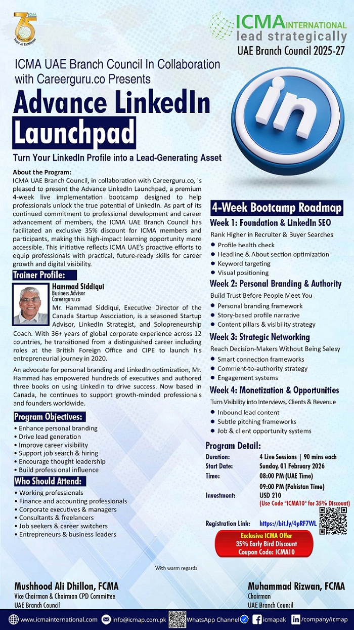 Established in 1951, the Institute of Cost and Management Accountants of Pakistan is the driving force