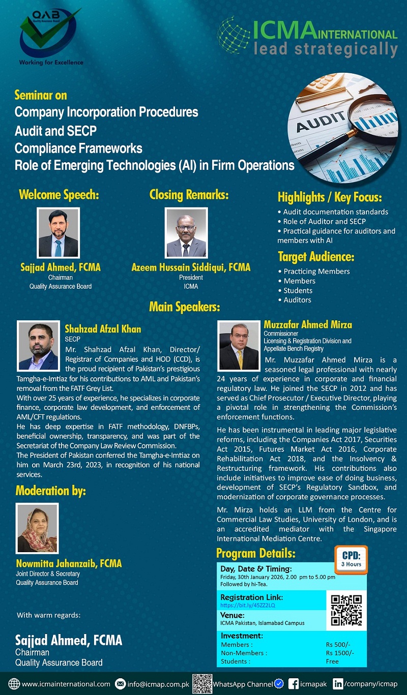behind the profession of Management Accounting in Pakistan. Our mission is to regulate and promote