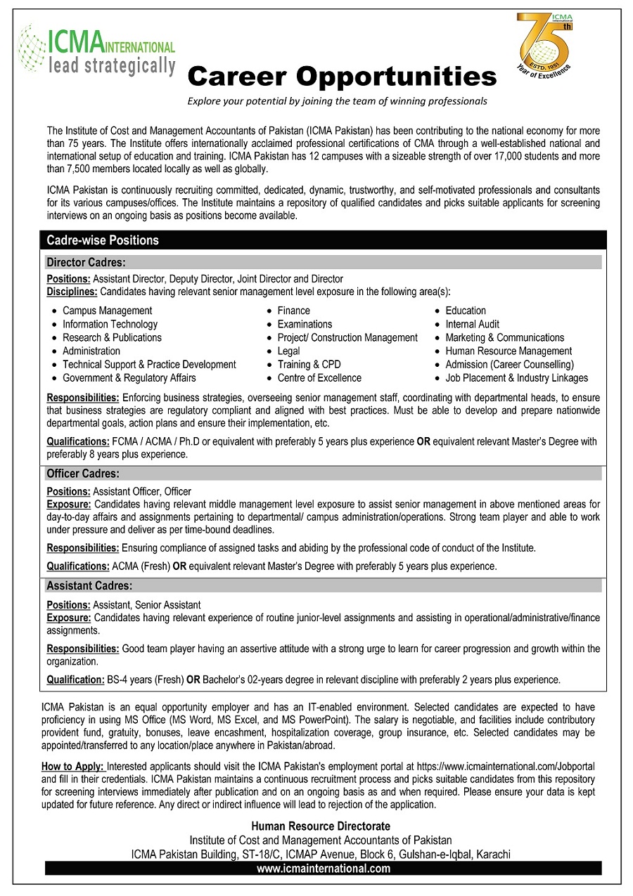 ICMA Pakistan Job Portal
